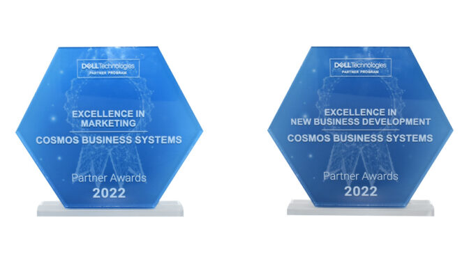 Μια διπλή διάκριση για την Cosmos Business Systems επεφύλασσε η Dell Technologies κατά την τελετή των “Dell Partner Awards 2022”, που πραγματοποιήθηκε σε μια λαμπρή τελετή στην Γλυφάδα, η πρώτη μετά από 2 έτη πανδημίας.