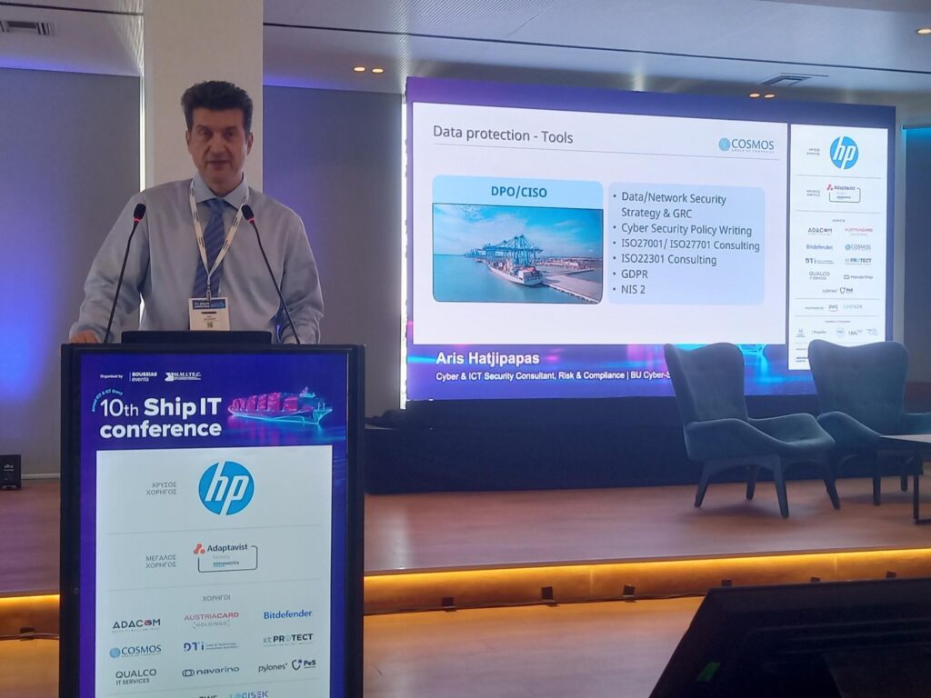 H Cosmos συμμετείχε ως χορηγός στο 10ο Ship IT Conference που διοργανώνεται κάθε χρόνο και συγκεντρώνει όλους τους ειδικούς της Ναυτιλιακής Βιομηχανίας με σκοπό την παροχή ενός ολιστικού και πρακτικού οδικού χάρτη για την επίτευξη της ναυτιλιακής ψηφιοποίησης, κυβερνοασφάλειας και της στροφής στην πράσινη ενέργεια σε ολόκληρη τη ναυτιλιακή βιομηχανία. Η Cosmos στην ομιλία της παρουσίασε λύσεις στον τομέα της Κυβερνοασφάλειας εξειδικευμένες στη Ναυτιλιακή Βιομηχανία.